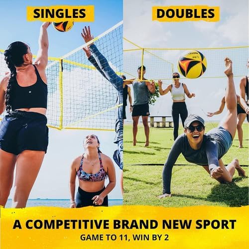 CROSSNET Quick Assemble 4 Square Volleyball Game Set for Adults and Kids with Volleyball Net, Backpack and Ball for Outdoor Games